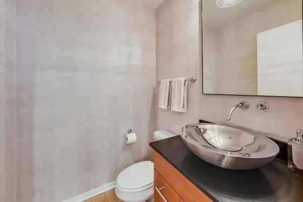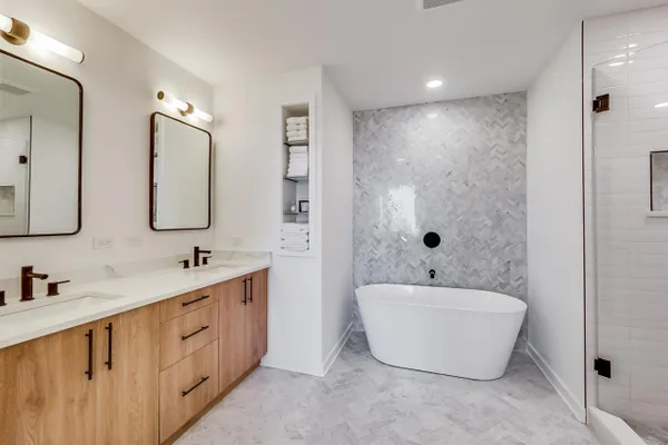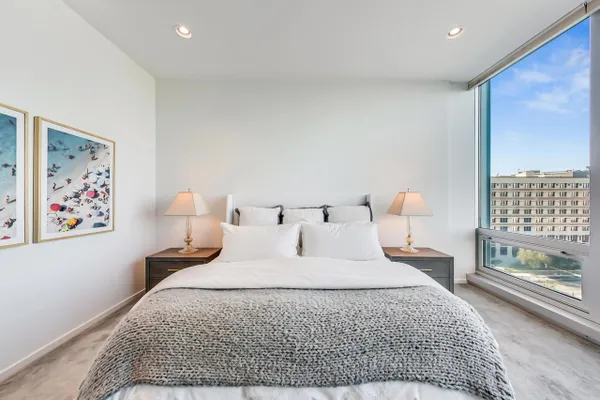 Welcome to the Montgomery, one of River North's most luxurious, full-amenity buildings. Step into the foyer that opens into an expansive light-filled layout, perfect for entertaining. 10 ft floor-to-ceiling windows make a panoramic view while the generous living area features a fireplace and adjacent family room. A powder room and dedicated dining area complete the open-concept design. The chef's kitchen features a walk-in pantry, stainless steel appliances including a gas cooktop, hood, oversized island, and Restoration Hardware pendants. The luxurious primary suite includes a large walk-in closet and a spa-inspired bath. Thoughtfully designed with custom natural wood double vanity and quartz top, Rejuvenation sconces, Carrara marble herringbone floors & accent wall, freestanding tub, walk-in shower with Italian subway tile and marble floors, and separate toilet area-plus sleek custom shelving and a medicine cabinet for extra storage. The 3rd bedroom is currently used as a versatile den/office across from living area. Additional features include a walk-in laundry room with new full-size GE washer and dryer, recessed LED lighting, custom closet built-ins throughout for incredible storage. A prime 2-car tandem parking space on the 3rd level available for $30k. Additional storage locker on second floor. Residents enjoy full-service amenities including 22,000 sq ft of outdoor space with grills and fire pits, a private dog park, fitness center, dry cleaners, party room, and 24/7 door staff. Just steps to East Bank Club, the vibrant restaurant district, Starbucks, Erie Dog Park, and more.