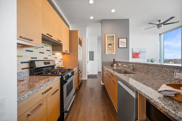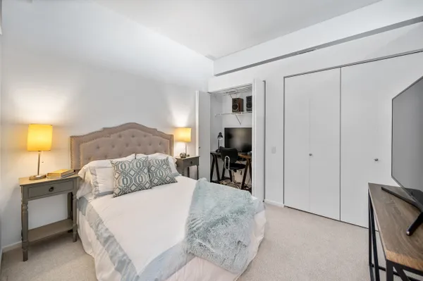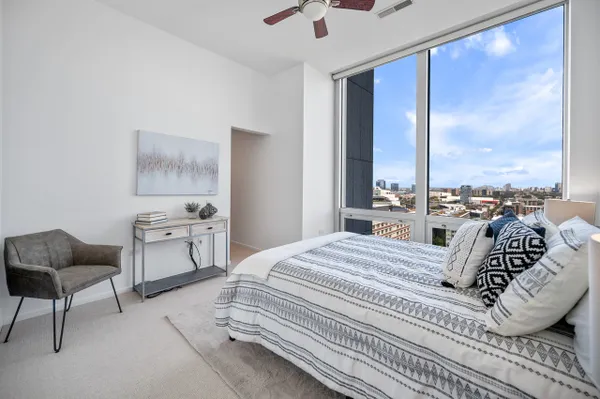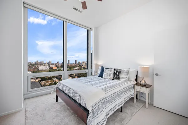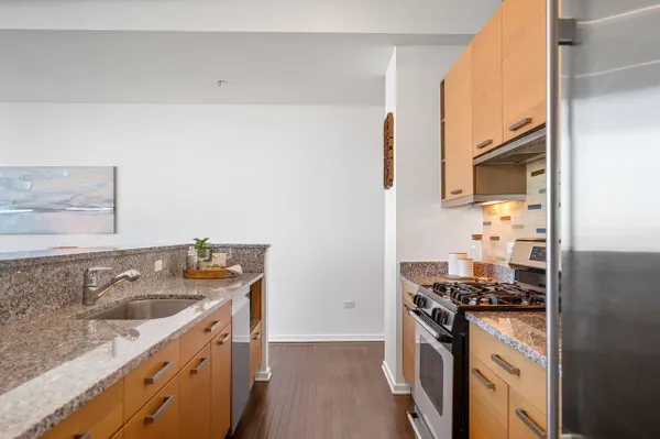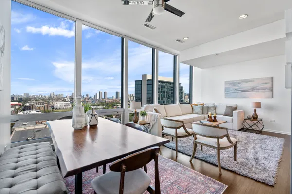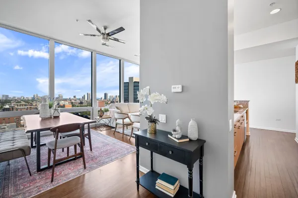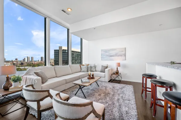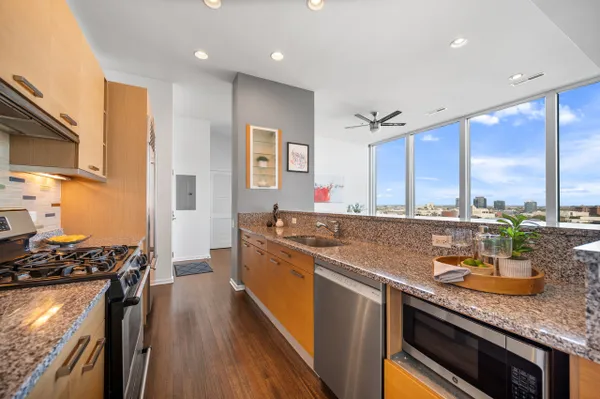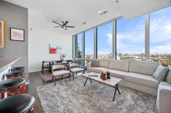 SOLD BEFORE PRINT. PRICED TO SELL! Panoramic views, flow, space, storage and luxury await you at this elegantly appointed split 2 bedroom / 2 bath condo at the Montgomery nestled in the heart of River North. The foyer boasts a guest closet as well as in unit laundry. As you enter into the unit, you are surrounded by hardwood floors & floor to ceiling windows that capture the most amazing north, west and east views of the city and the lakefront. The Chef's kitchen features top of the line stainless steel appliances including Sub Zero refridgerator, granite counters and an expansive breakfast bar with seating for 4 is open to the great room, which combines a dining area and a living area. Tucked away behind the kitchen is the fully enclosed 2nd bedroom and full bathroom with a walk in shower. At the opposite end is the primary suite with dual large walk-in closet(s) and a beautiful marble bath with dual vanities, walk-in shower and a linen closet. Indoor garage heated parking space, $35K and addtional storage. The Montgomery is a full amenity luxury building offering: 24-hour door and maintenance staff, a 22,000 sq. ft. north lawn patio with patio tables, firepits and gas grills, a "real" dog park, rooftop sun deck, party room, exercise room and incredible onsite management and door staff. Conveniently located, Walk to transportation, the Chicago river, restaurants and hotspots. DONT MISS THIS GREAT UNIT AT AN AMAZING PRICE.